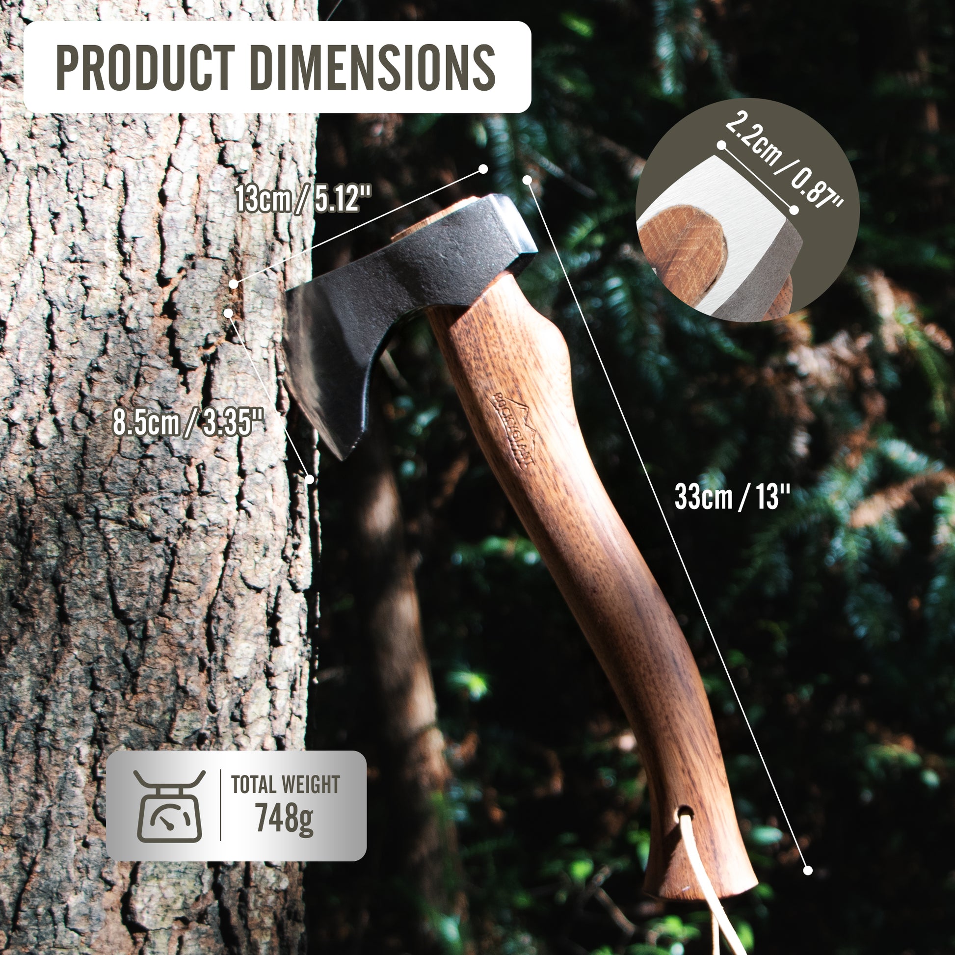 - Perfect size and weight: Rockygiant camping axe is small and lightweight,with a 13'' handle and a total weight of just 1.65 lbs. It has a perfect balance between handle and blade for maximum control and efficiency.